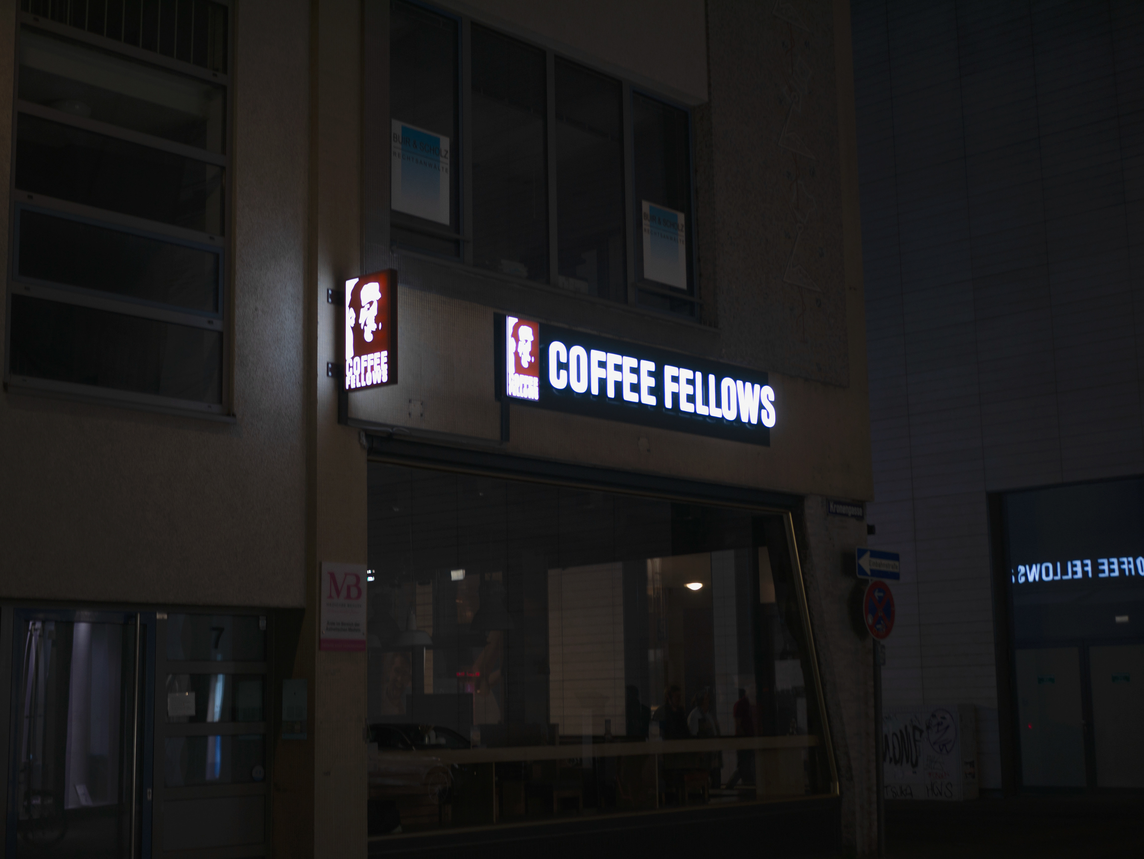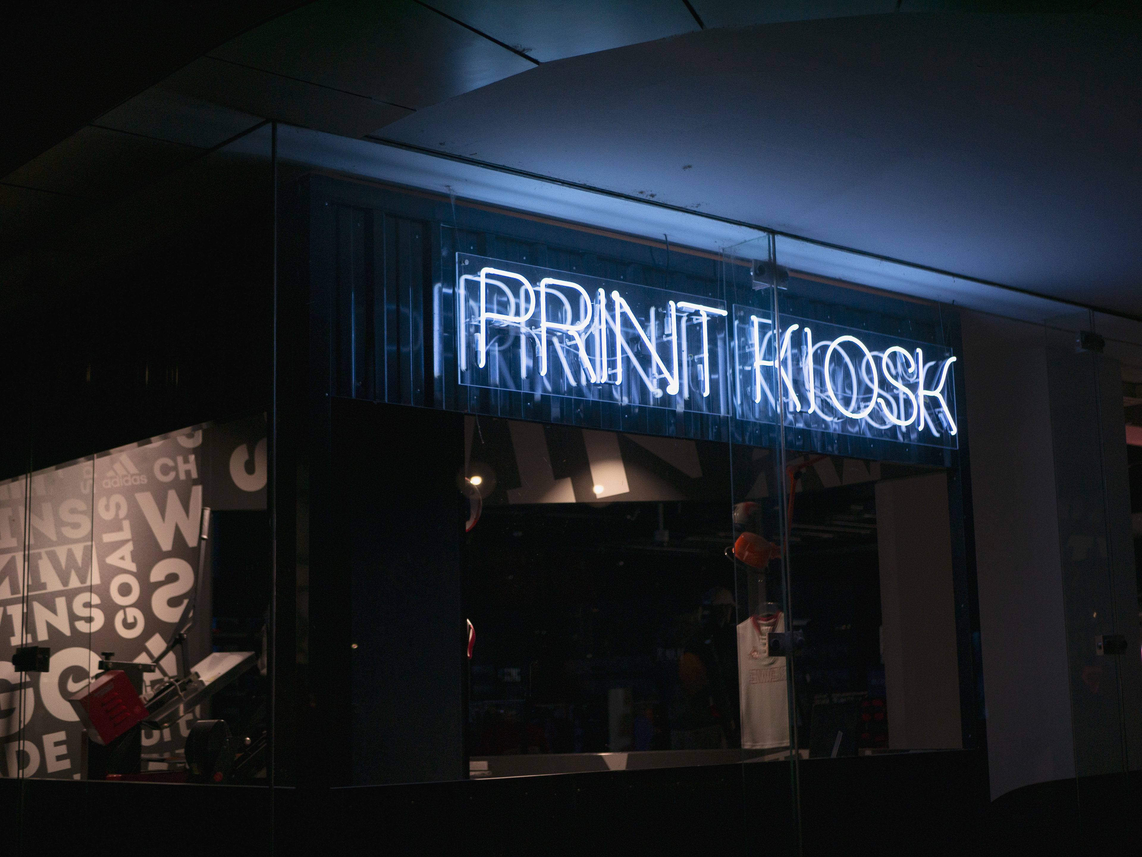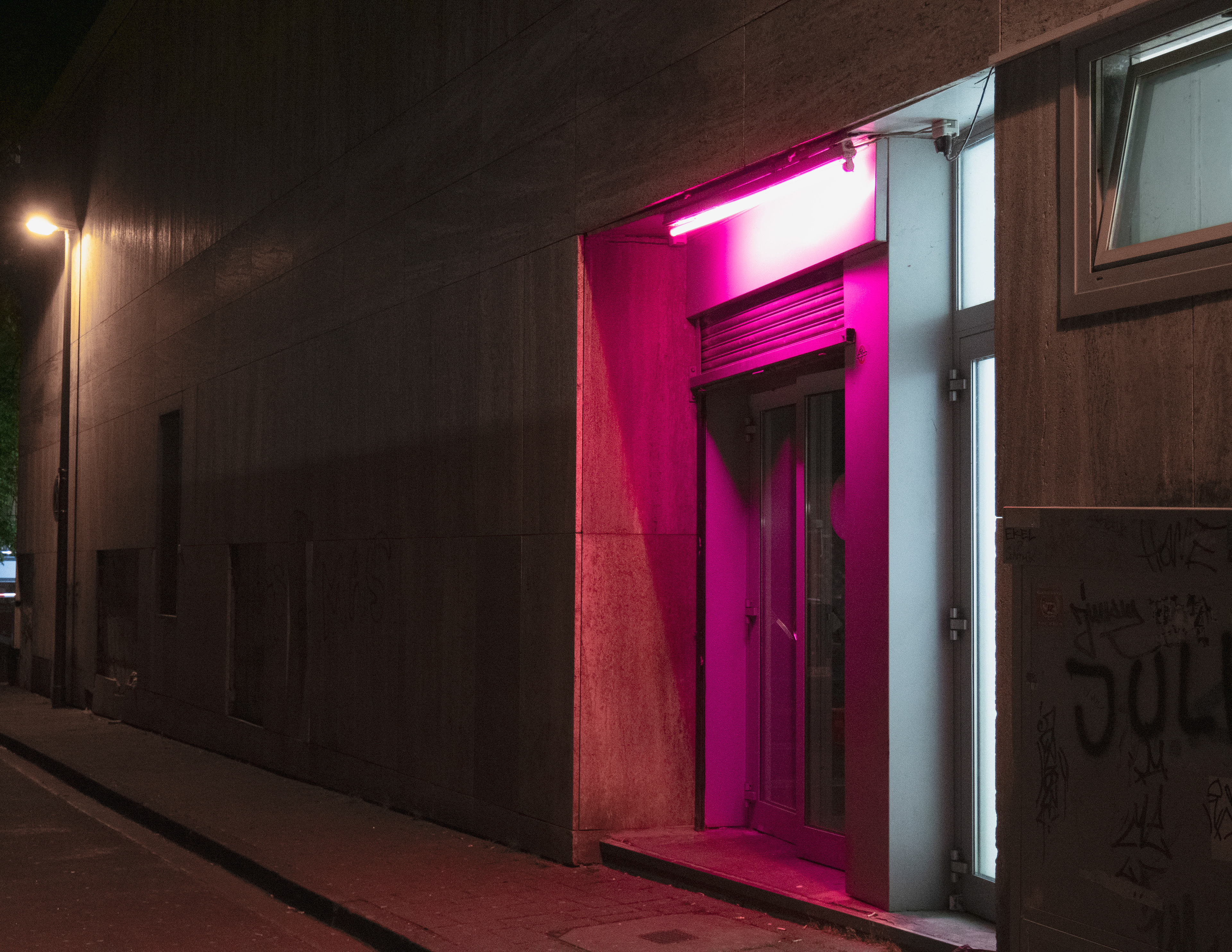 Die Bilder dokumentieren künstliche Beleuchtung in städtischen Umgebungen – von Neon-Reklamen über leere Schaufenster bis zu liminalen Innenräumen nach Geschäftsschluss.